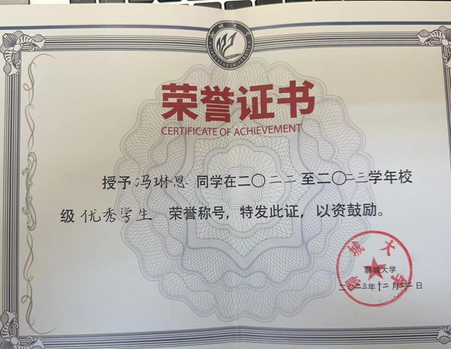 2022年,获得5g影院 校级“优秀学生”荣誉称号;