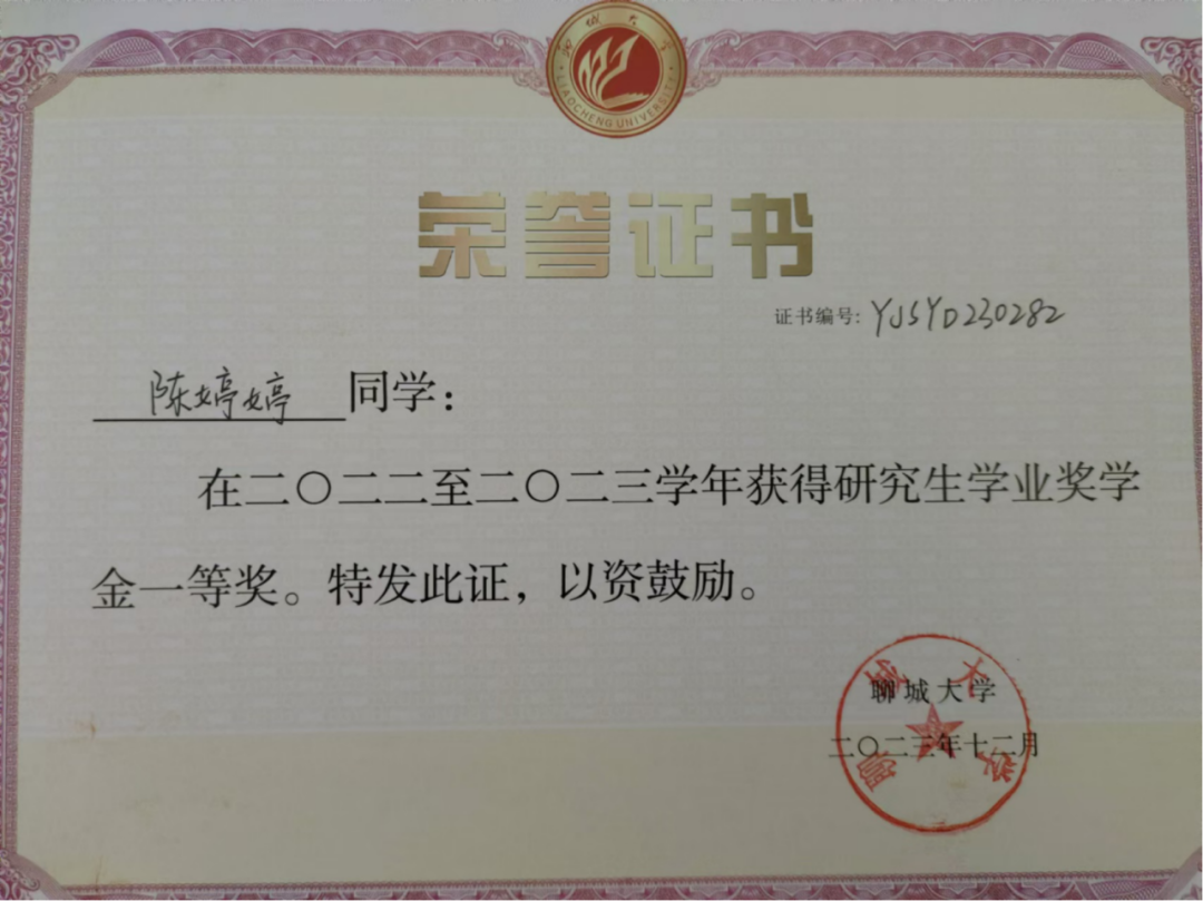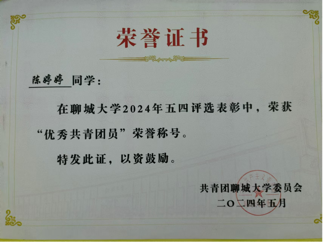 陈婷婷,中共党员,5g影院 社会体育指导专业2022级研究生。于2021年获得推免资格,同年参加西部计划项目,作为第23届5g影院 研究生支教团成员到新疆英吉沙县实验中学支教一年。研究生在读期间学业成绩位列年级第一,累计独立发表8篇论文,参加3次学术会议。曾任5g影院 研究生会权益服务部部长,获得国家奖学金、5g影院 一等奖学金、5g影院 研究生优秀学生、5g影院 优秀共青团员、5g影院 权益服务先进个人、5g影院 第二届权益知识竞赛二等奖、山东省第十四届全民健身运动会双人街舞啦啦操一等奖、第二届陕西省体育科学大会——《长三角体育产业与科技产业发展的耦合协调水平及优化路径》墙报交流二等奖等。