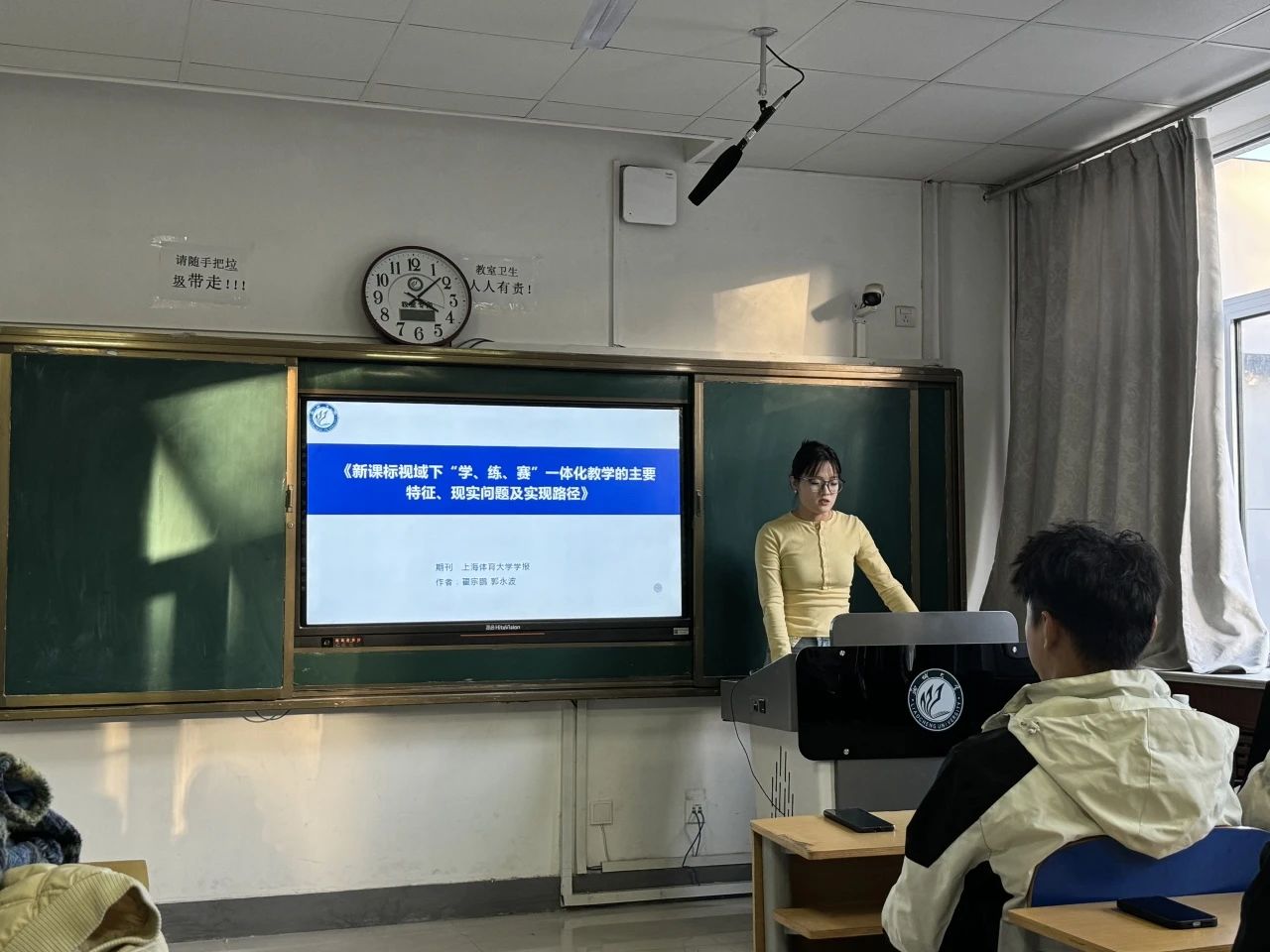 2024级体育教学专业研究生马卓楠报题目为《新课标视域下“学、练、赛”一体化教学的主要特征、现实问题及实现路径》本文基于《课程标准(2022 年版)》(新课标)的具体内容与要求,对“学、练、赛”一体化教学的主要特征、现实问题及实现路径进行深入剖析,为体育教学论的理论探究和一线教学的实践操作提供参考。