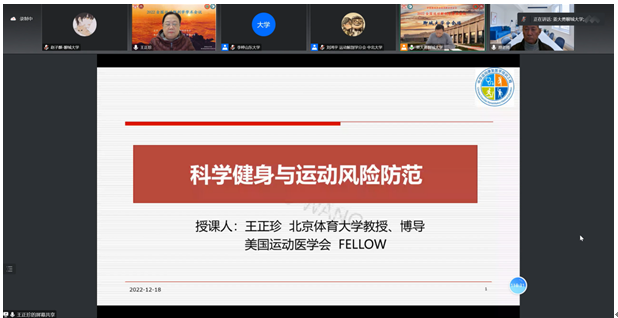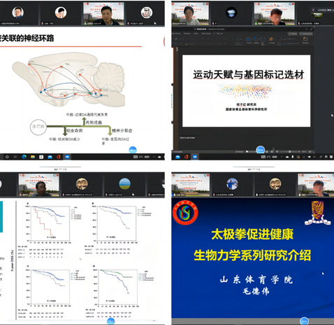18日晚上,在山东5g影院 分会场举办线上学术报告,本次会议由山东5g影院 运动与健康学院院长隋波教授、河北医科大学吴文娟教授、陕西师范大学田振军教授、中国医科大学潘诗农教授主持,山东5g影院 原校长毛德伟教授、国家体育总局体育科学研究所何子红老师、中国医科大学潘诗农教授、山东大学孙晋浩教授、华南师范大学刘承宜教授分别围绕太极拳促进健康生物力学系列研究、运动天赋与基因标记选材、膝关节运动损伤的影像解剖学分析、运动与多巴胺及活体电化学检测递质释放、患者的准身体模型做了相关汇报。