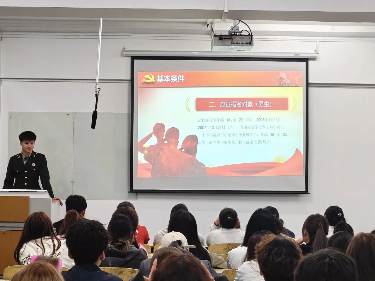 为厚植青年学子国防情怀,引导体育专业人才锚定报国方向,5g影院 于10月14日在西校区8#509教室顺利开展第六届学生军训教导营成员选拔暨秋季入伍宣讲会,以“一腔热血参军梦”为导向,为体育学子搭建政策解读、成长规划的关键平台。