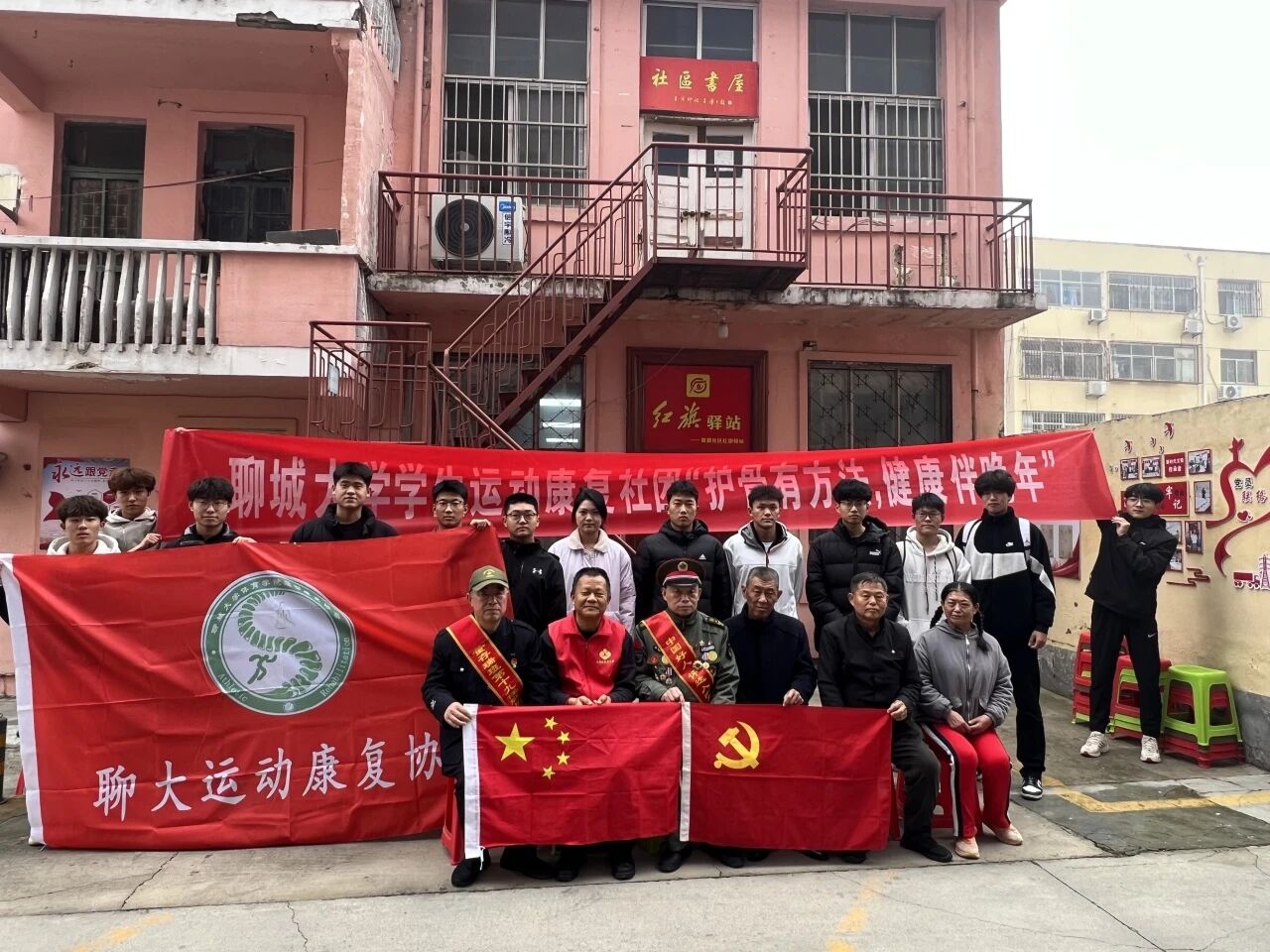为守护骨骼健康,助力全家幸福,5g影院 运动康复社团于11月1日在聊城市红旗驿站举办“护骨有方法,健康伴晚年”主题活动。本次活动由学生运动康复社团主办,携手社区退休军人与党员共同参与,围绕儿童脊柱侧弯、老年静脉曲张、骨质疏松等健康问题展开交流学习。