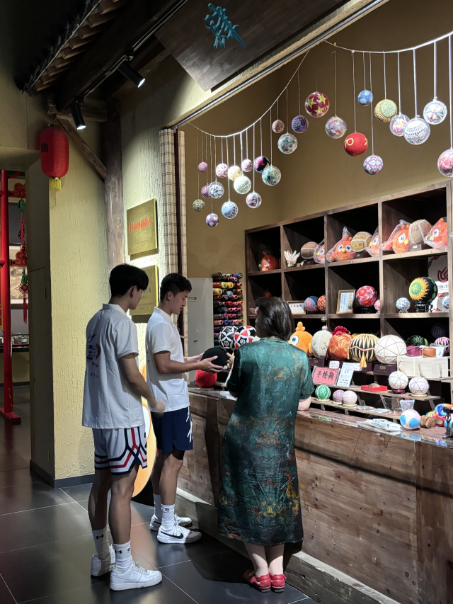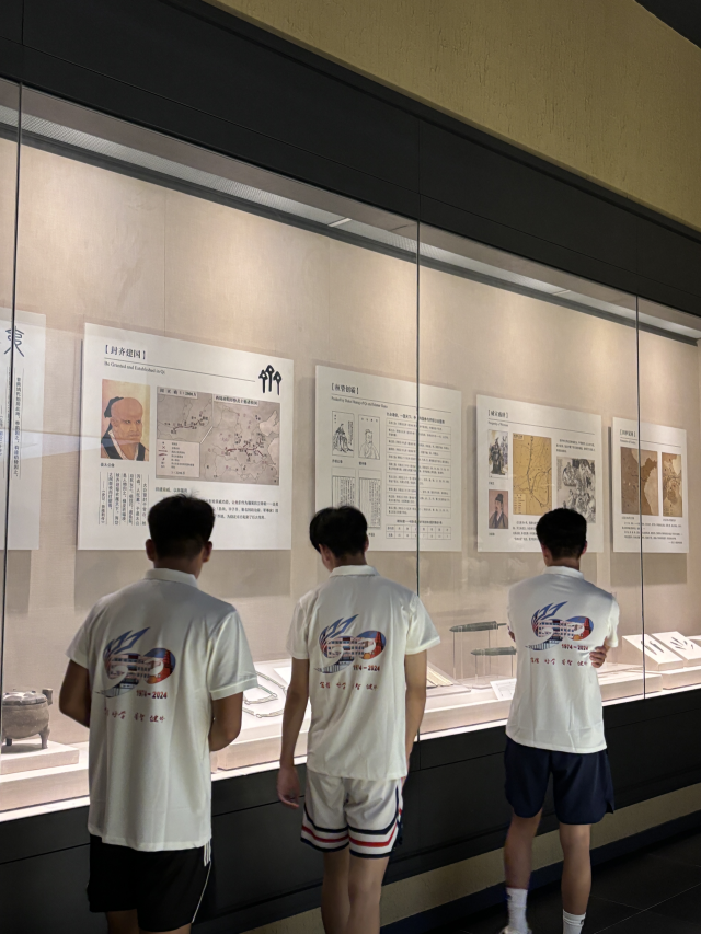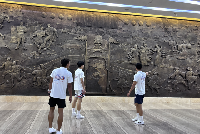 在参观过程中博物馆安排了蹴鞠文化传承人进行了精彩的解说,传承人从蹴鞠的起源向蹴鞠到足球的演变进行讲解,,同学们仔细研究细节,并积极与文化传承人互动交流,提出自己的疑问和见解。在欣赏展品中的精美刻画后,不禁纷纷赞叹通过这次实践活动,对蹴鞠这一古老的运动有了全新的认识,不仅了解了其发展过程和文化内涵,更感受到了中华文化的厚德载物。