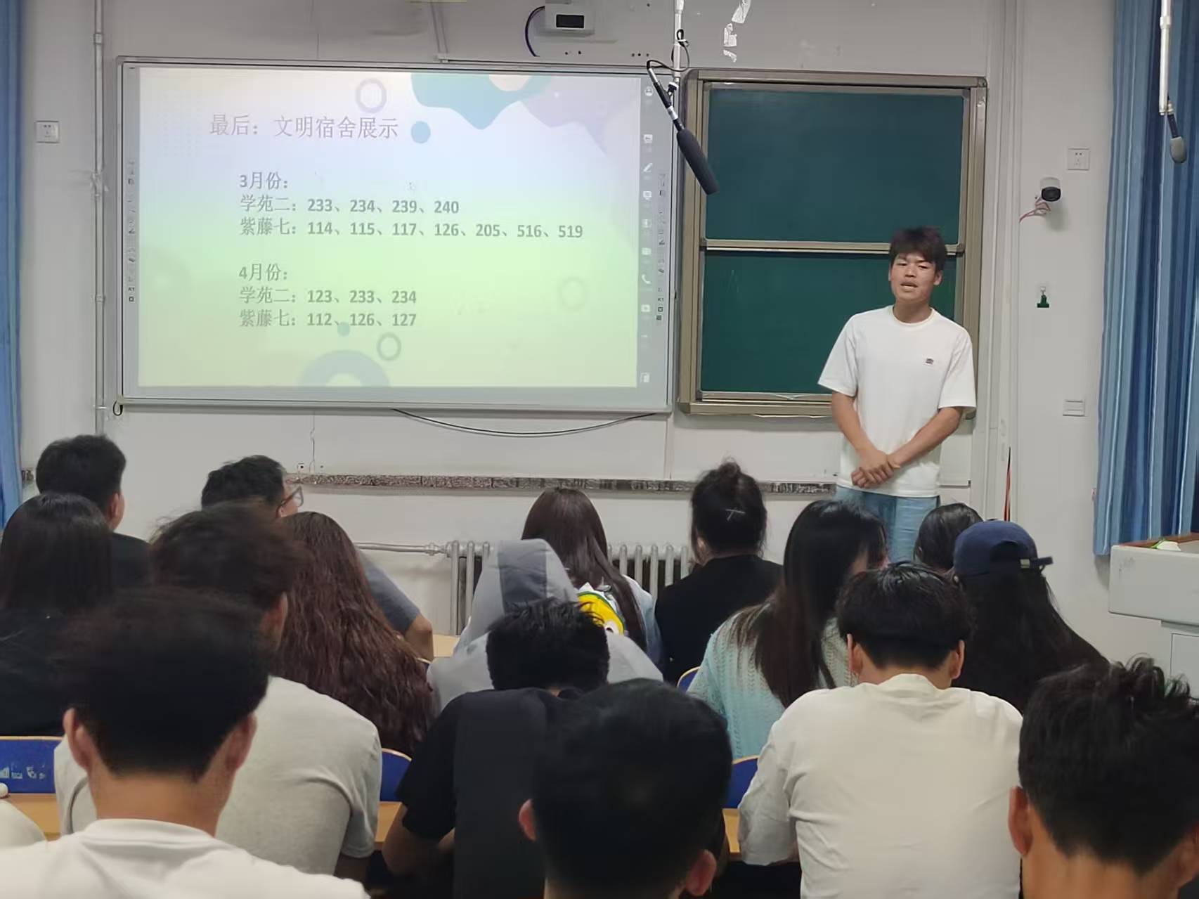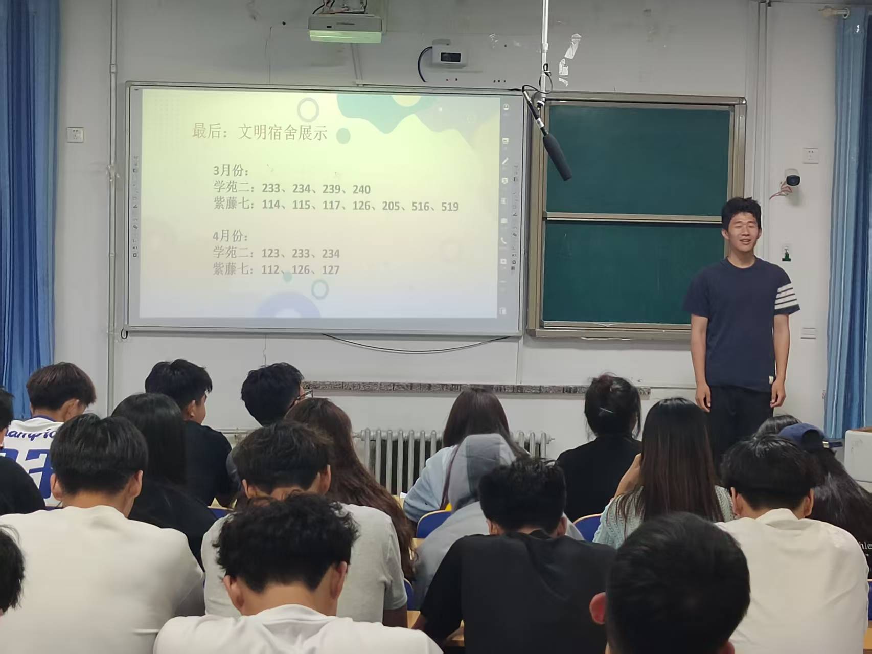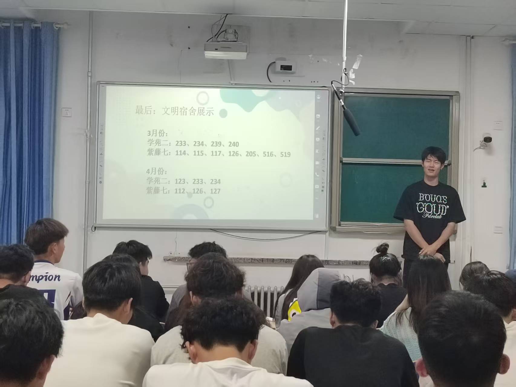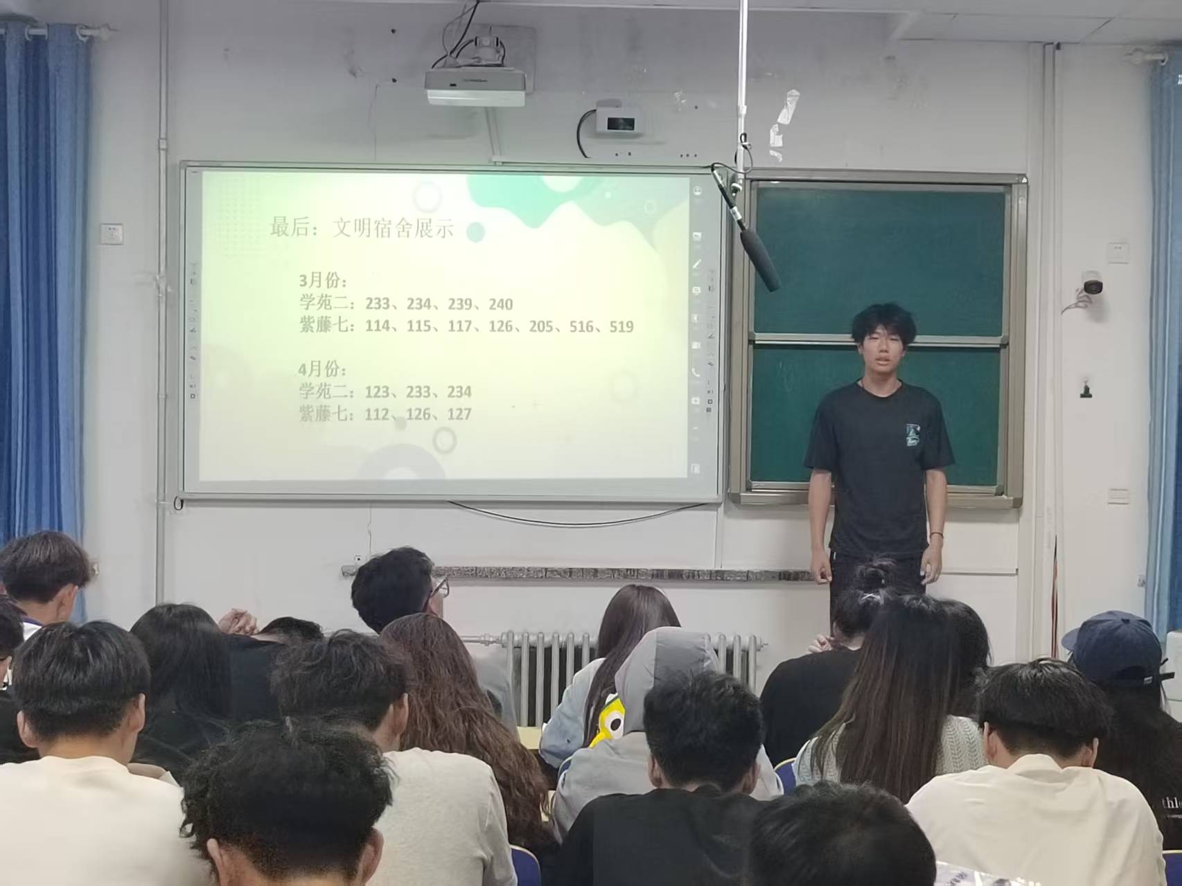 会上以PPT形式详细讲解宿舍管理新规,涵盖作息纪律、安全规范、卫生标准等核心内容,强调舍长作为“宿舍第一责任人”的职责。直观的案例展示与互动问答,让管理要求入脑入心,为后续工作奠定基础。