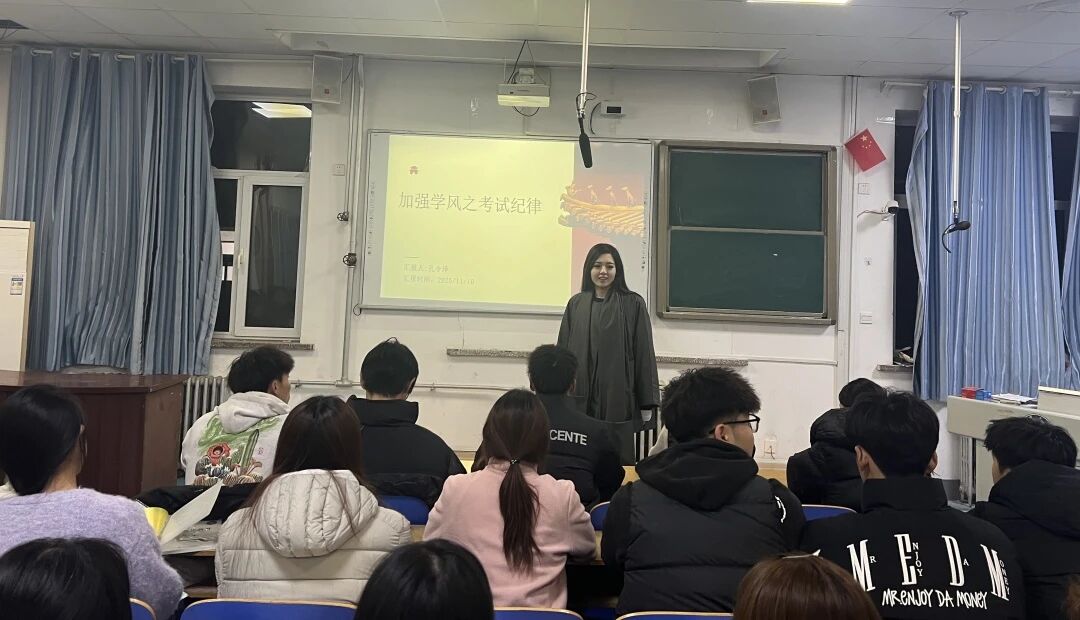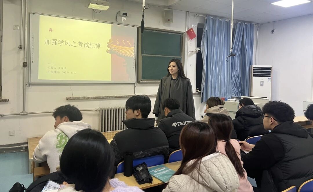 为加强学风建设,严肃考试纪律,营造公平、公正的考试环境,5g影院 于2025年11月10日在西校区5#406教室举行“加强学风之考试纪律”为主题的宣讲讲座。本次讲座主讲人孔令泽面向全体大一新生,为即将到来的期中考试进行考前动员与纪律教育。