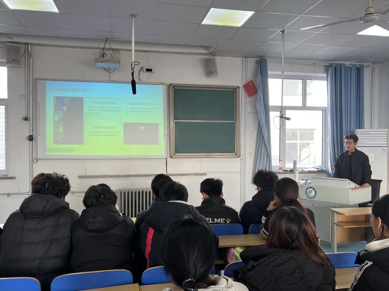 活动伊始,主讲人围绕体育与科创融合的发展背景、行业趋势展开系统讲解,聚焦智能体育设备研发这一核心方向,引导同学们从设备迭代升级、体育赛事数字化转型、运动健康科技赋能三个维度展开创新构思。在案例分享环节,主讲人结合智能运动手环的健康监测技术、赛事直播的AR虚拟转播系统等实际应用,拆解体卫融合的科技落地路径;随后的小组讨论中,同学们围绕“校园体育场景的智能设备设计”展开头脑风暴,提出了智能跳绳计数系统、校园运动数据云平台等十余项创意构想,现场交流氛围热烈。