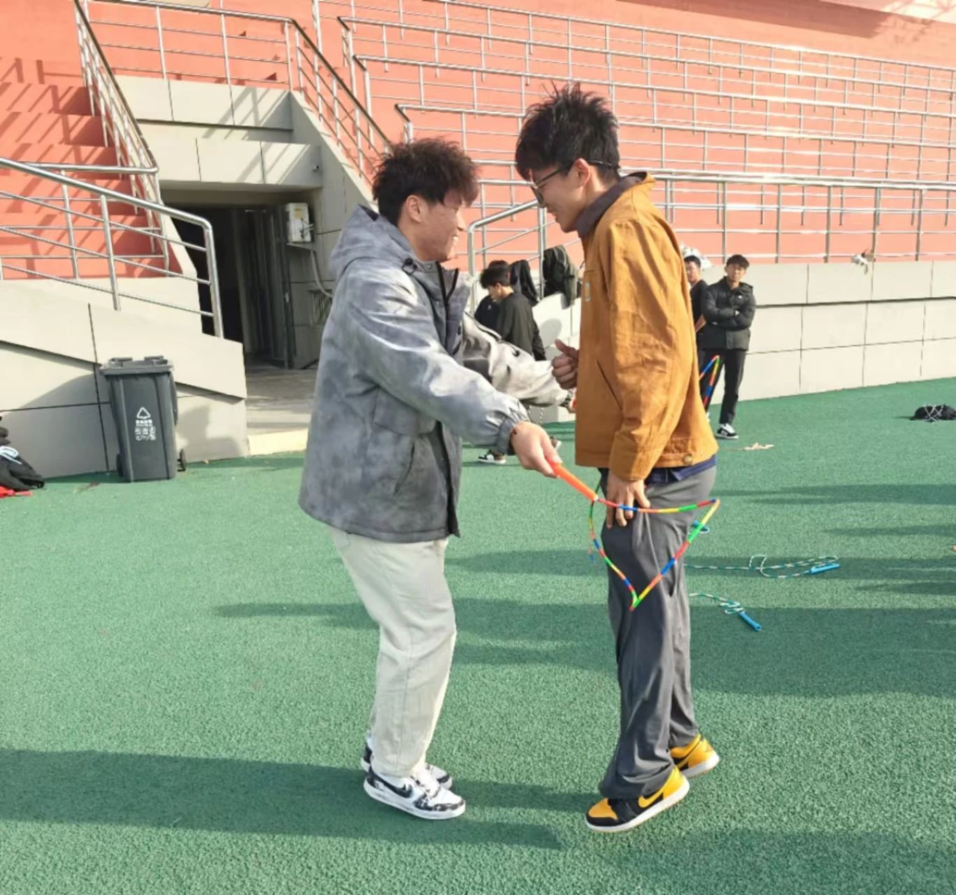 接着我们进行了趣味比赛,先是带人跳,两人在同一节奏下配合,共同挥动,此时两人都都是彼此最好的搭档,相信自己的队友,也是相信自己,而此时成绩并不重要,重要的是彼此的信任胜过一切。