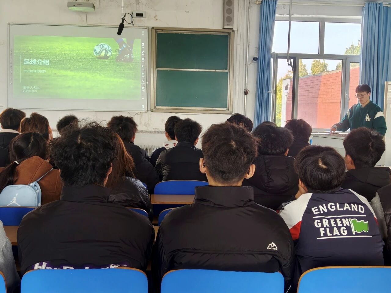 活动伊始,主讲人许佳乐通过PPT从足球起源与发展、规则与装备、技术与战术、文化与社会影响四个维度,为同学们系统普及足球知识,筑牢理论根基。期间设置的足球有奖竞答环节,极大激发了同学们的参与热情,大家踊跃抢答,现场氛围热烈。
