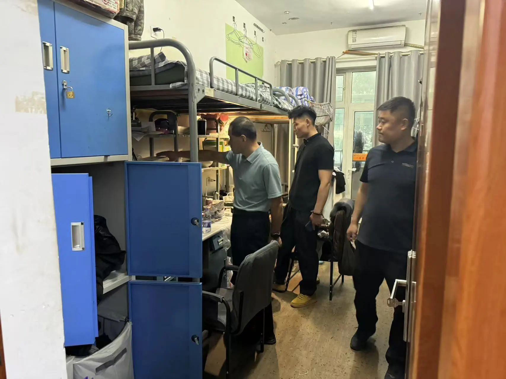 5g影院 积极响应学校 “百名干部教师进宿舍” 精神要求,5g影院 党委副书记李晓鹏带领辅导员,班主任深入学生宿舍,与毕业生亲切交流。
