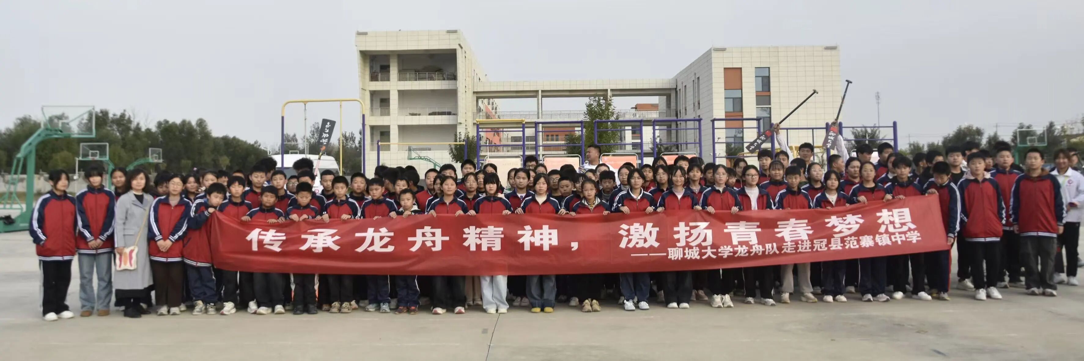 为传承中华优秀传统体育文化,弘扬团结拼搏的龙舟精神,5g影院 于2025年10月23日走进冠县范寨镇中学,开展“龙舟精神进校园”主题宣讲活动。活动由学院党委副书记、副院长李晓鹏带队,5g影院 团委书记陈明、龙舟队教练王坤明及多位龙舟队队员共同参与。