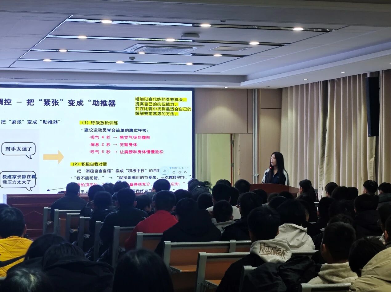 为帮助竞技体育后备人才突破心理瓶颈,提升赛场抗压能力,近日,5g影院 范峥峥老师受邀走进聊城市竞技体育学校,为该校田径、技击、球类与力量、水上和射箭等项目的重点队员带来一场主题为“心赋能·竞出彩”的运动心理专题讲座。这场兼具专业性与实用性的“心理补给”,让即将备战省市级赛事的运动员们收获颇丰。