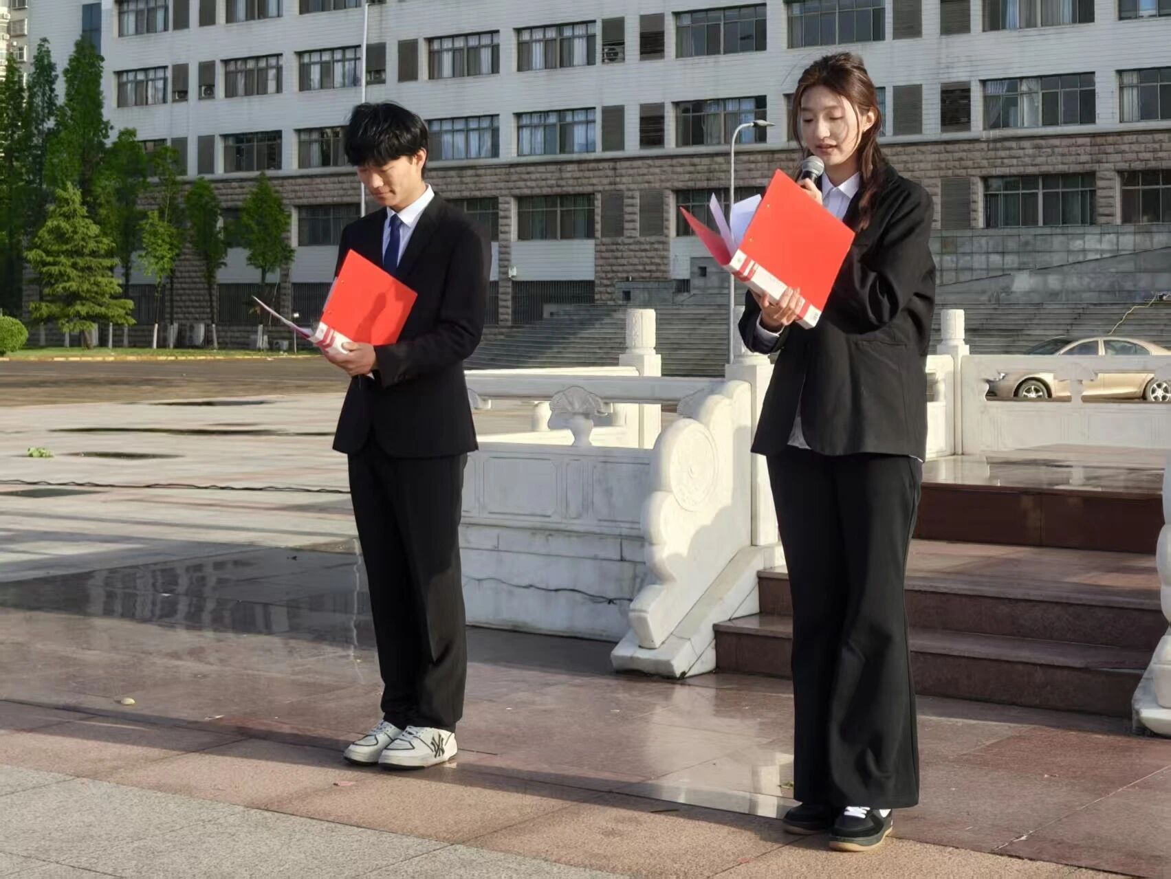 学生代表带来朗诵《那一日,我们从济南出发》,用真挚饱满的情感回望峥嵘岁月、追忆革命先辈,在慷慨激昂的诵读中许下“请党放心,强国有我”的铮铮誓言,展现出体育青年昂扬向上、勇担使命的青春风采。