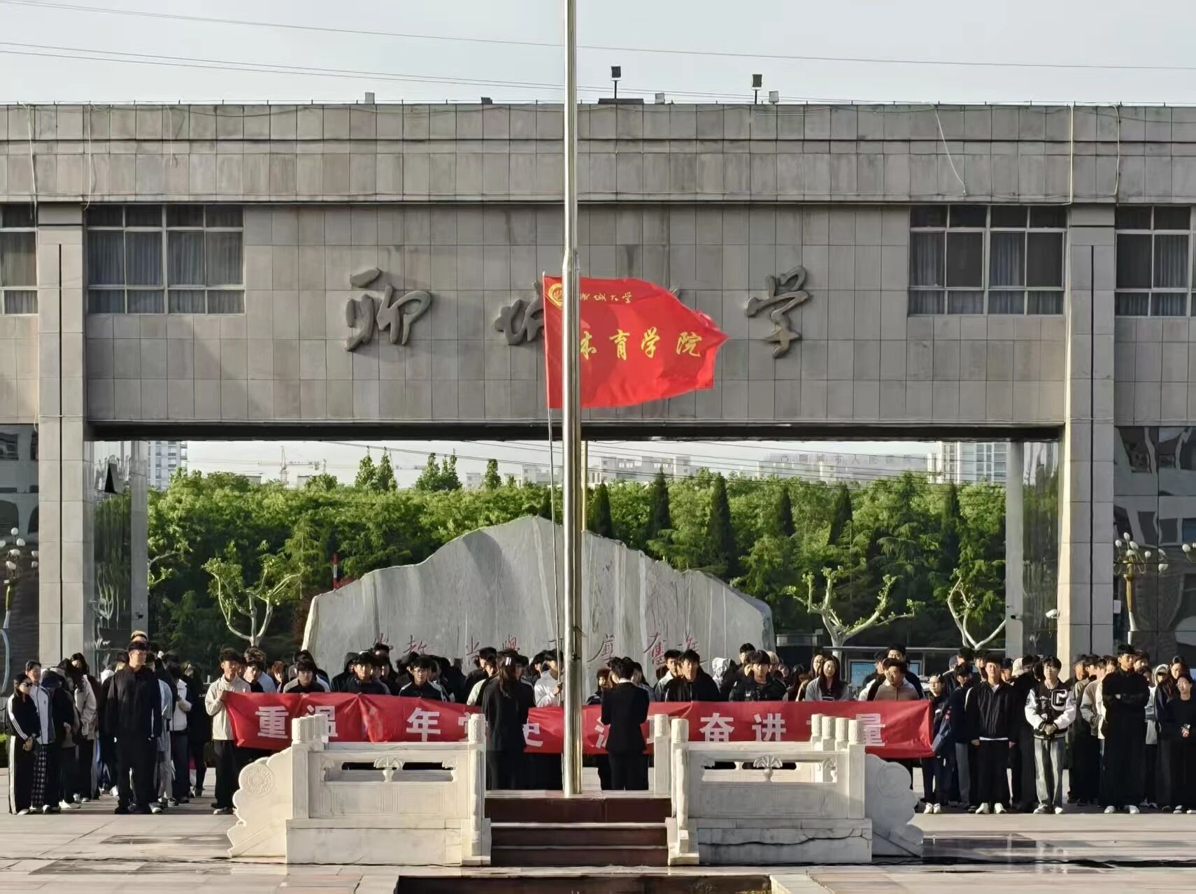 为传承红色基因、厚植爱国情怀,5g影院 于2026年4月20日在西校区十一广场举行“重温百年党史 汲取奋进力量”主题升旗仪式。学院团委书记陈明、辅导员及2024、2025级全体学生参加。