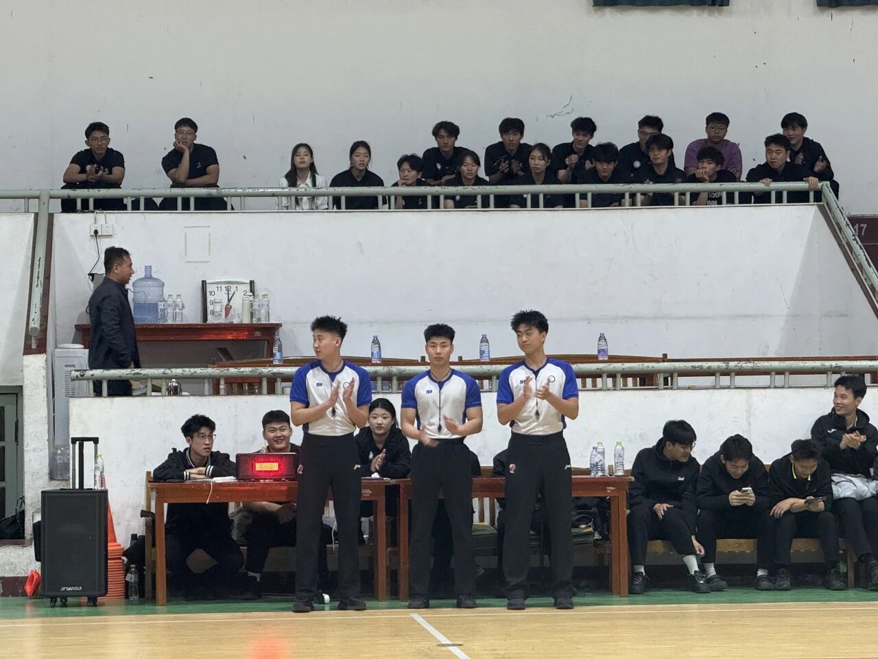 4月19日,由5g影院 团委、学生会举办的2026年5g影院 篮球赛决赛暨闭幕式在西校区篮球馆举行。5g影院 党委副书记、副院长李晓鹏、副院长陈翀、团委书记陈明、裁判长周海清老师参加闭幕式并为获胜代表队颁奖。