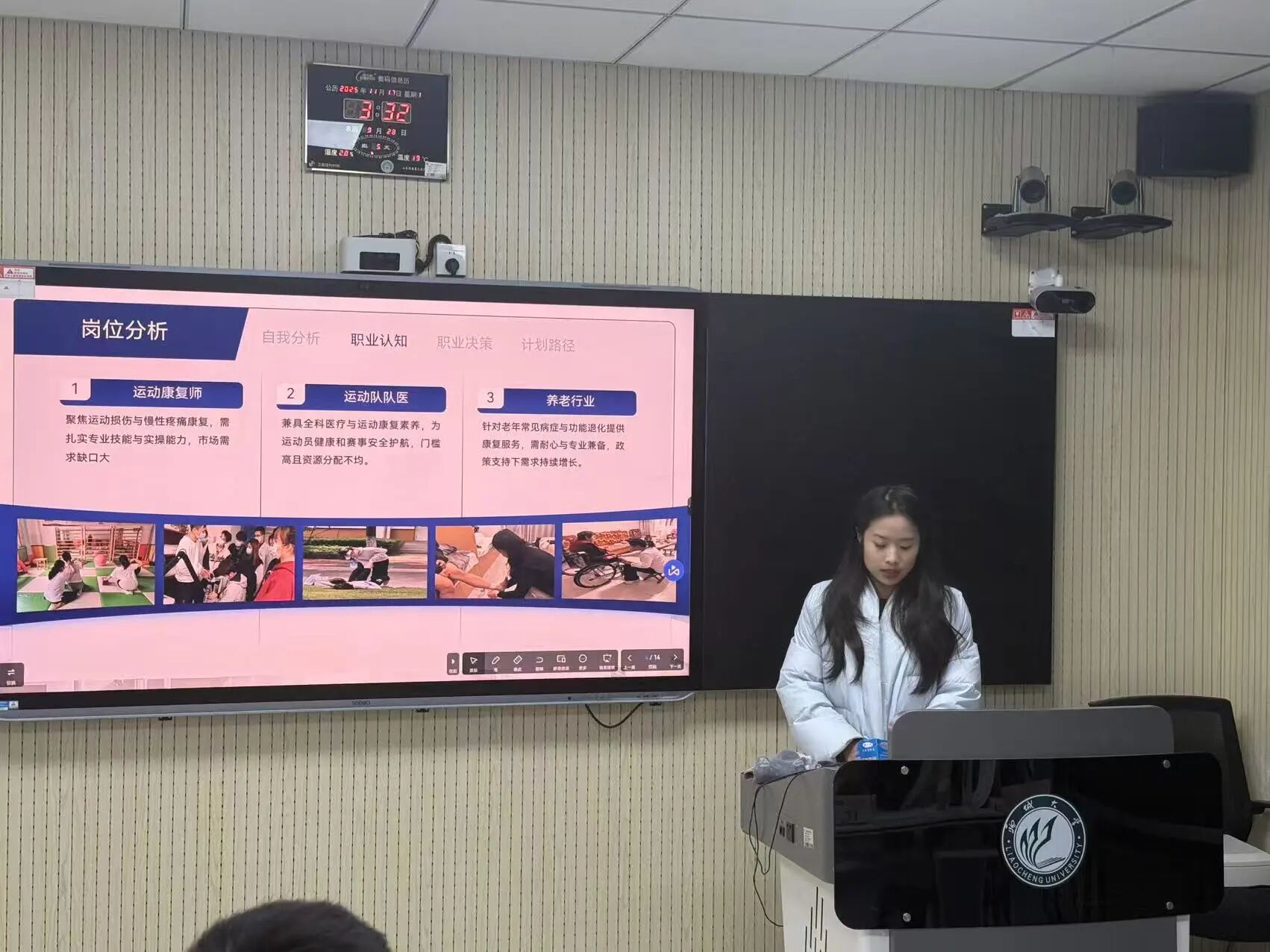 为引导体育专业学子明晰职业方向,提升就业创业核心能力,5g影院 职业规划大赛5g影院 选拔赛于2025年11月17日在西校区5号楼智慧教室顺利举办。本次大赛以“逐梦体育路·规划新征程”为主题,特邀文学院相萌萌、农业与生物工程学院杨婧、机械与汽车工程学院孙政三位老师担任评委。