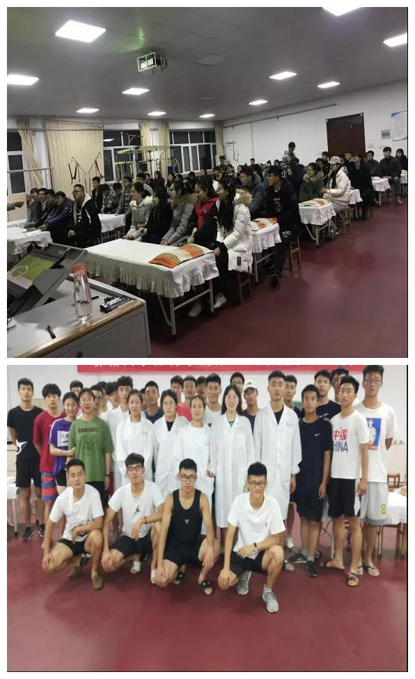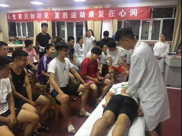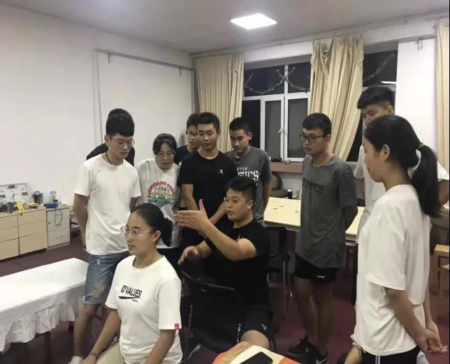 2019年10月14日晚,运动康复专业的学生为外国语学院的学生放松并讲解康复方面的知识。