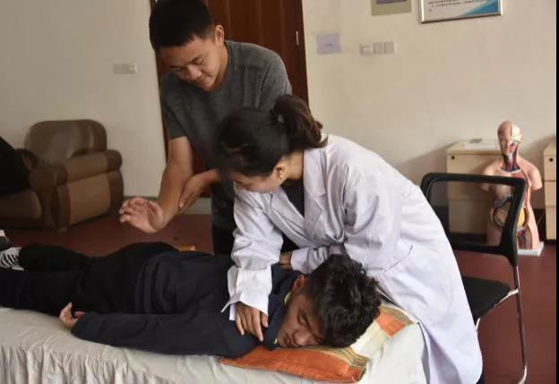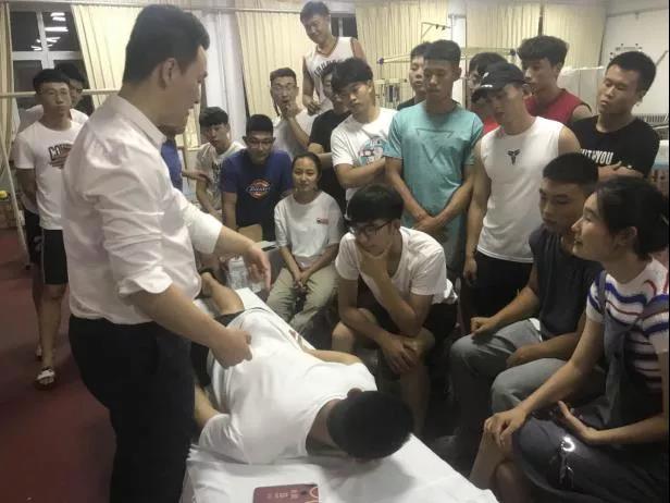 2018年4月11日,5g影院 运动康复方向研究生在康复室对18级运动康复班的学生进行颈椎胸椎的手法培训,旨在增强自身知识储备。