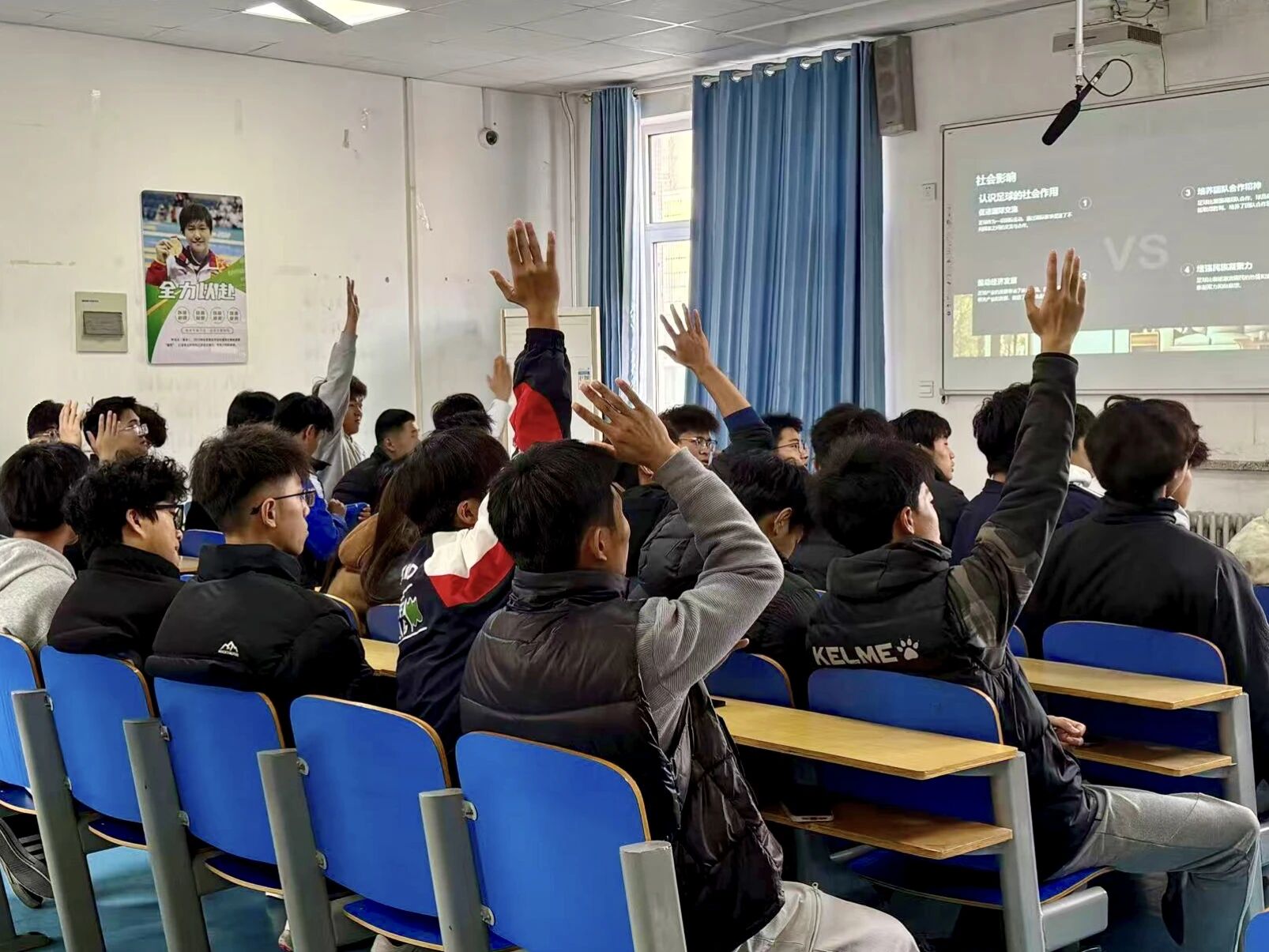活动伊始,主讲人许佳乐通过PPT从足球起源与发展、规则与装备、技术与战术、文化与社会影响四个维度,为同学们系统普及足球知识,筑牢理论根基。期间设置的足球有奖竞答环节,极大激发了同学们的参与热情,大家踊跃抢答,现场氛围热烈。